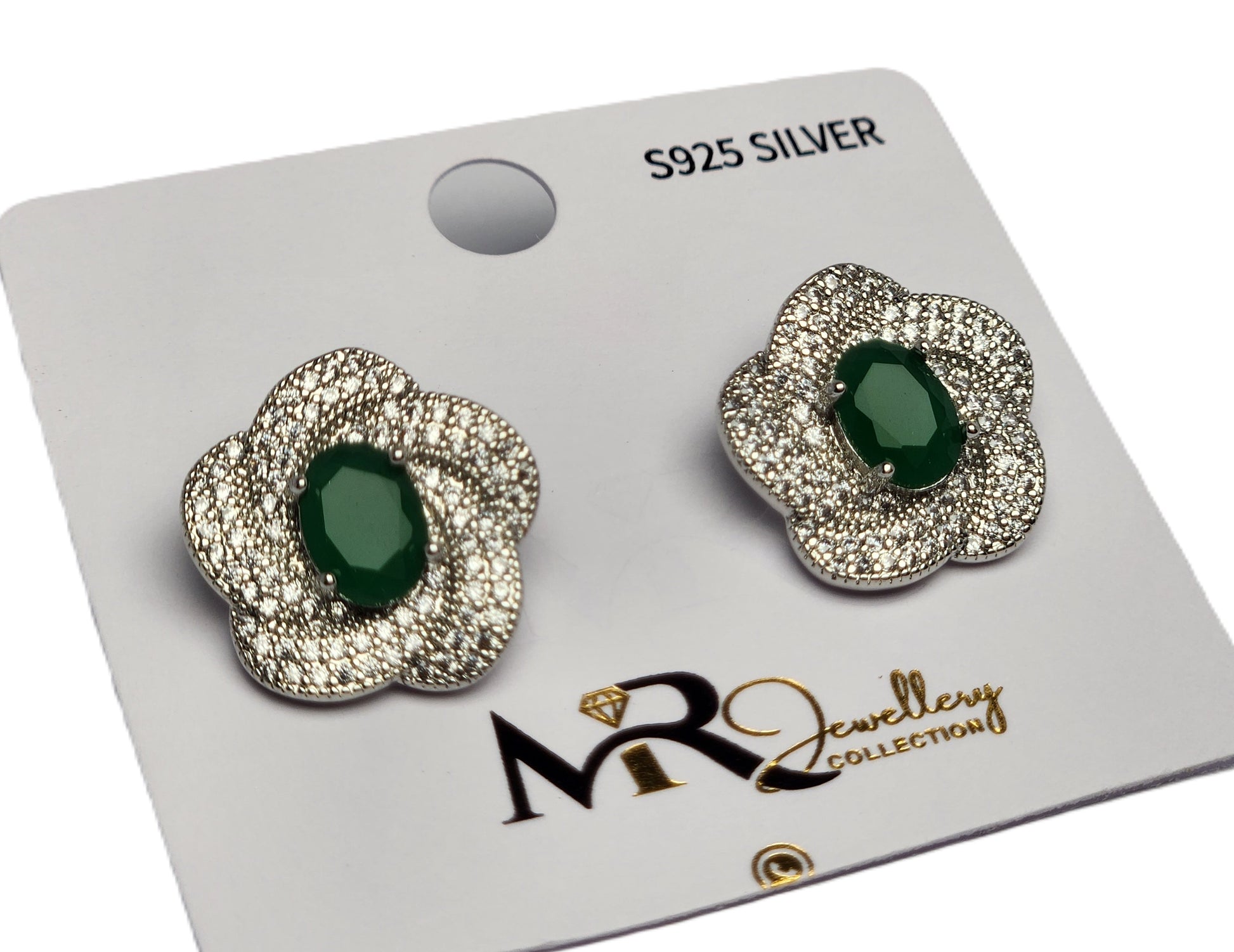 Round Star-Shaped Earrings with Center Stone & White Crystal Accents – Elegant Fashion Jewellery